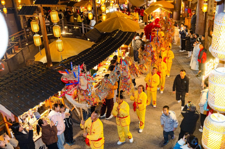 节日期间每天安排多场互动演出,让游客在逛市集、购年货之余,还能沉浸式感受传统民俗艺术魅力,形成“白天逛市集、夜晚赏百戏”的立体年味体验。